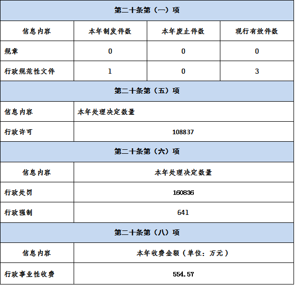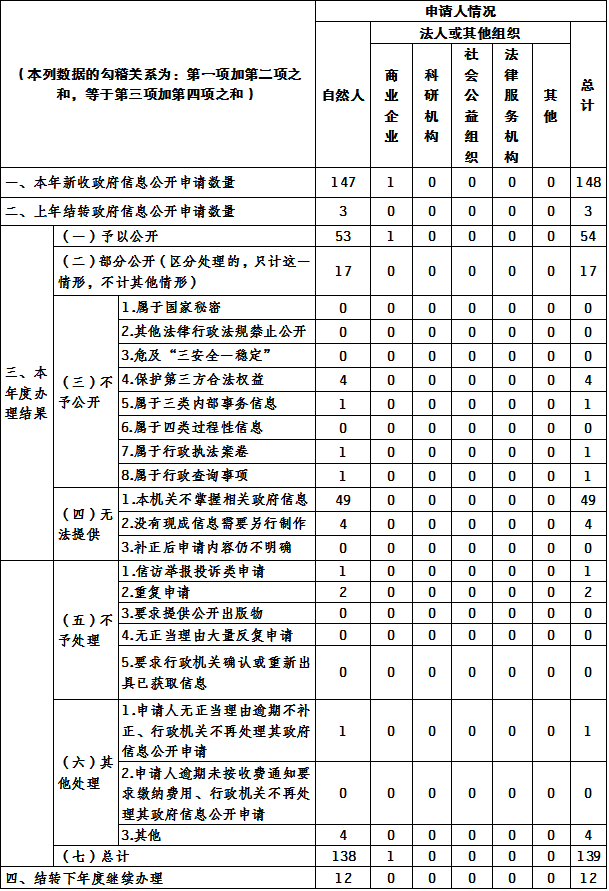 本报告内容包括总体情况、主动公开政府信息情况、收到和处理政府信息公开申请情况、政府信息公开行政复议和行政诉讼情况、存在的主要问题及改进情况、其他需要报告的事项等六部分内容。