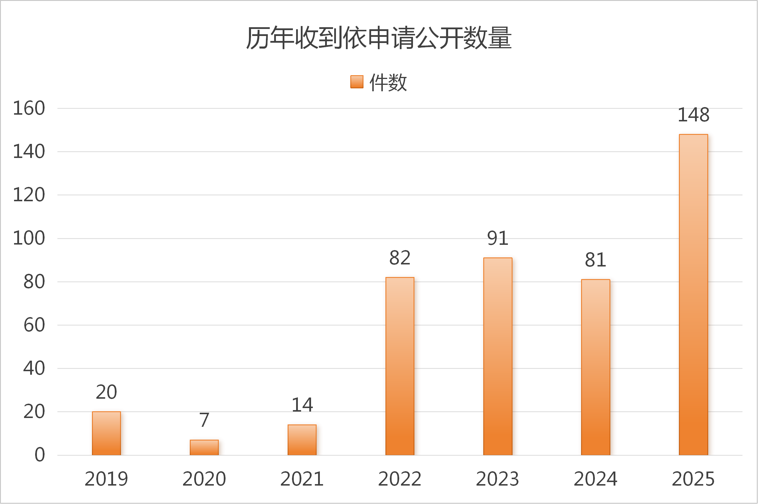 2025年,高新区管委会收到政府信息公开申请148件,上年结转3件,答复政府信息公开申请139件,均在法定期限内予以答复,剩余12件结转到下年办理。予以公开及部分公开 71件;不予公开7 件;无法提供54件,不予处理3件,其他处理5件。发生信息公开行政复议3 件,结果维持3件。