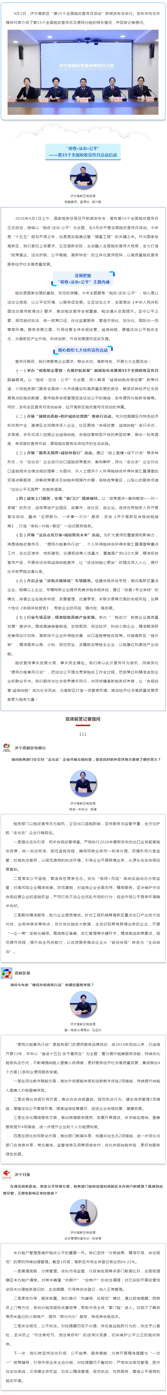 新闻发布会 | 济宁高新区“第35个全国税收宣传月活动”新闻发布会举行