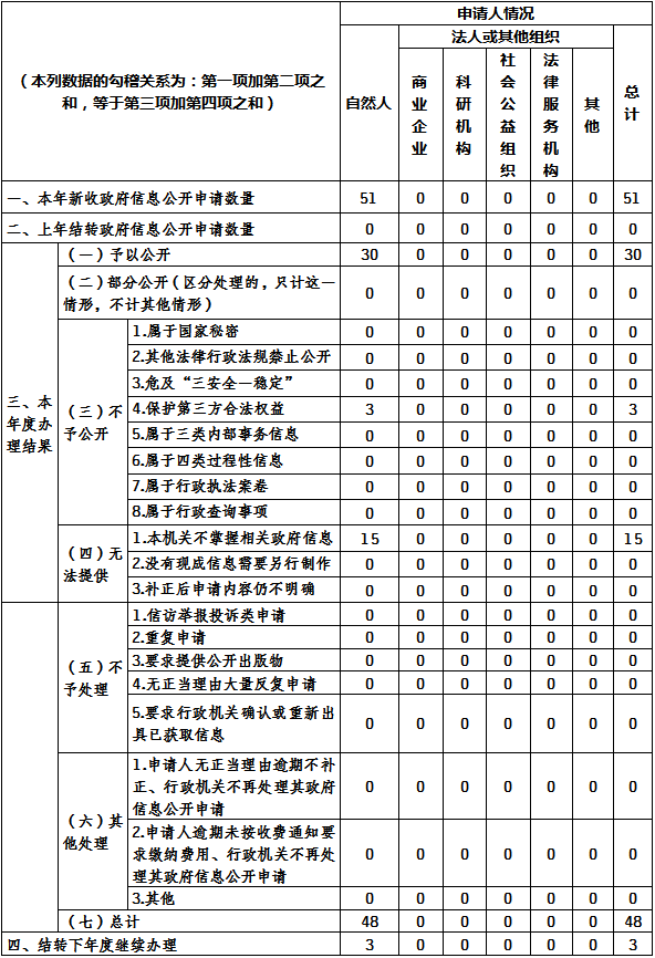 三、收到和处理政府信息公开申请情况